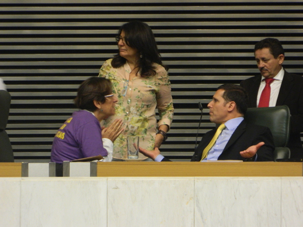 Quando o presidente da Alesp, deputado Fernando Capez (PSDB) chegou para anunciar a pauta da sessão do dia, soubemos que, de novo, nosso projeto não estava em sua relação. A desculpa da vez? “Está marcada uma reunião entre deputados e o TJ-SP para que o órgão dê sua anuência para a aprovação do PLC, para que possamos pauta-lo na próxima quarta”. A esta altura do campeonato? O presidente do Tribunal, desembargador José Renato Nalini, já não se pronunciou diversas vezes solicitando a aprovação do projeto? Se o PLC 06 é de autoria do Tribunal, ainda é preciso anuência do próprio?