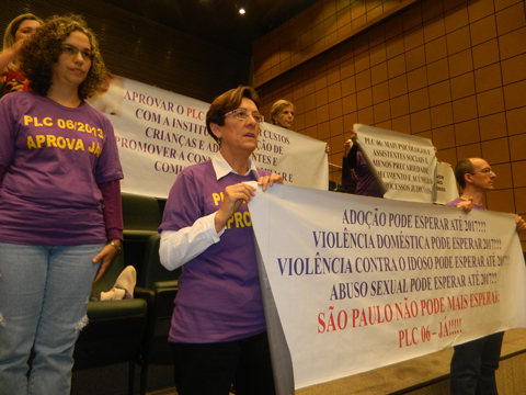 “Pra que Legislativo, se quem manda é o Executivo?” foi com esse bordão que, mais uma vez, reforçamos a nossa luta na Assembleia Legislativa pela aprovação do Projeto de Lei Complementar 06/2013. Na tarde desta terça-feira (12/05) tivemos a clareza de que o nosso movimento instaurou uma crise entre o Legislativo e o Executivo. Isso porque, apesar de todos os deputados estaduais afirmarem ser favoráveis à aprovação do projeto, incluindo o presidente da Assembleia Legislativa, deputado Fernando Capez (PSDB), ele é barrado da pauta de votação pelo líder do governo, deputado Cauê Macris (PSDB), sob a alegação de que o Executivo está passando por ajuste fiscal.